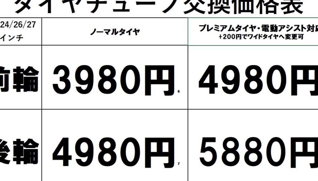 自転車パンク修理の費用